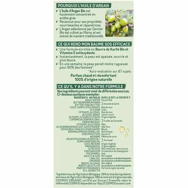 Le baume SOS multi-usages Ă l’argan Garnier bio est idĂ©al pour nourrir les peaux sèches. Notre produit est certifiĂ© bio cosmos organique certifiĂ© par ecocert green life selon le rĂ©fĂ©rentiel cosmos.