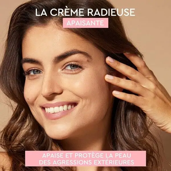 La texture onctueuse de notre Crème Radieuse Apaisante Hydratante 48h enveloppe la peau d’un voile de douceur pour l’apaiser et la protéger des agressions extérieures.