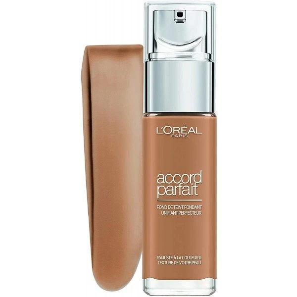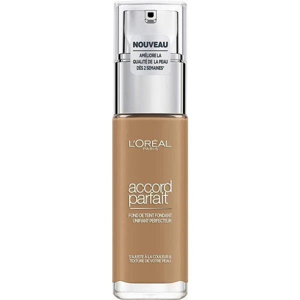 L’Oréal Paris – Fond de Teint Fluide Accord Parfait – Peaux Sèches à Normales – Nouvelle formule enrichie en acide Hyaluronique et Aloé Vera