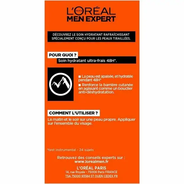 Gel ultra-frais hydratant spécialement conçu pour les hommes à la peau du visage tiraillée, Texture innovante se transformant en eau au contact de la peau