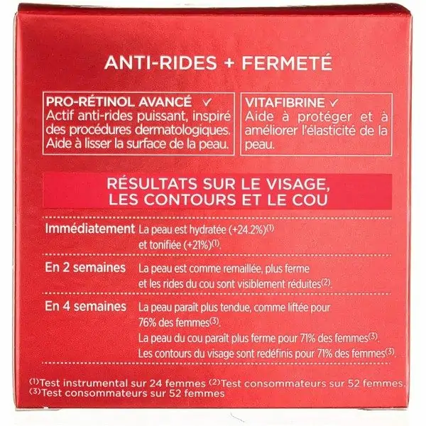 Formule composée d’actifs anti-rides puissants (Pro-Rétinol Avancé et Vitafibrine) pour lisser la surface de la peau et lutter contre la distension de la peau