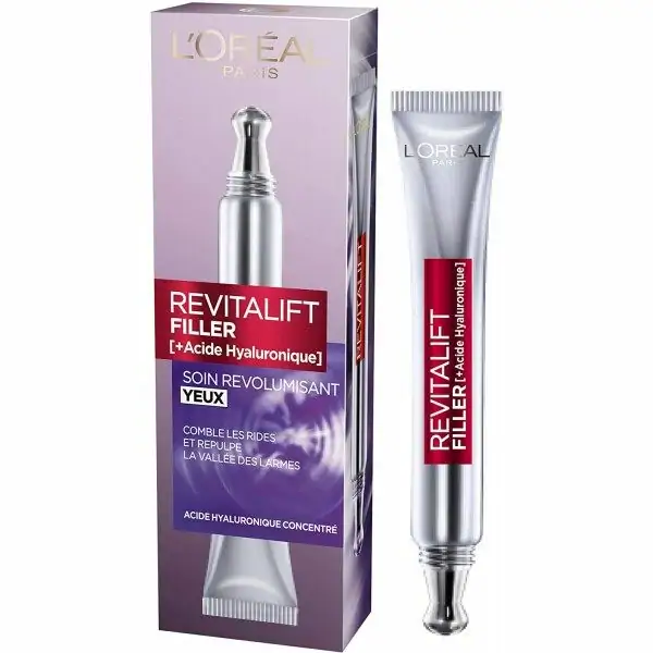 Innovation : Double-applicateur révolutionnaire avec côté plat pour masser et dégonfler les cernes et côté incurvé pour épouser la forme de la vallée des larmes, Formule hautement concentrée en acide hyaluronique, Testé sous contrôle dermatologique
